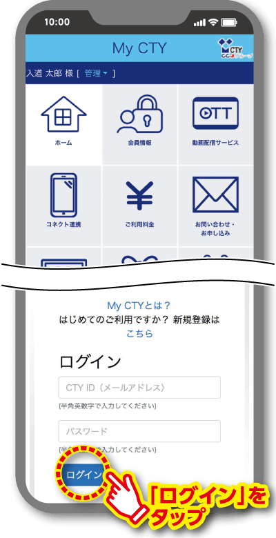 ページ下部のMy CTY または My CNSへお進みください。登録済みの方はログインを、登録がお済みでない方は登録をお願いいたします。